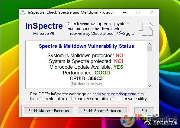 下载“InSpectre.exe”(点此下载),右击以管理员身份运行;