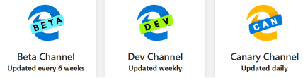 1、打开页面https://www.microsoftedgeinsider.com/en-us/download下载,目前分为3个版本,Beta(最稳定,每6周更新),Dev(比较稳定,每周更新),Canary(每天更新)。
