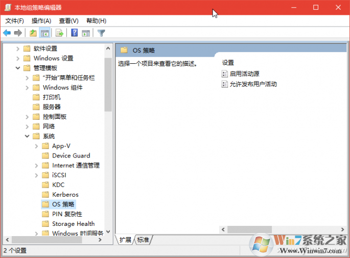 2、接下去依次展开并定位至“计算机配置→管理模板→系统→OS策略”,在右侧窗格中找到“启用活动源”项(图1);
