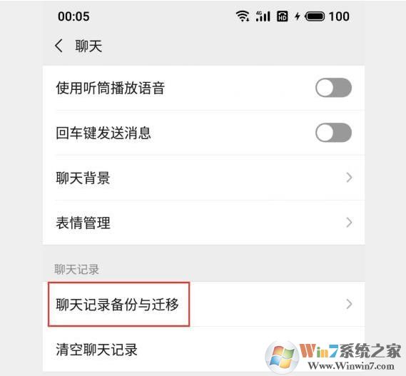 2、在“聊天”选项中找到“聊天记录备份与迁移”。