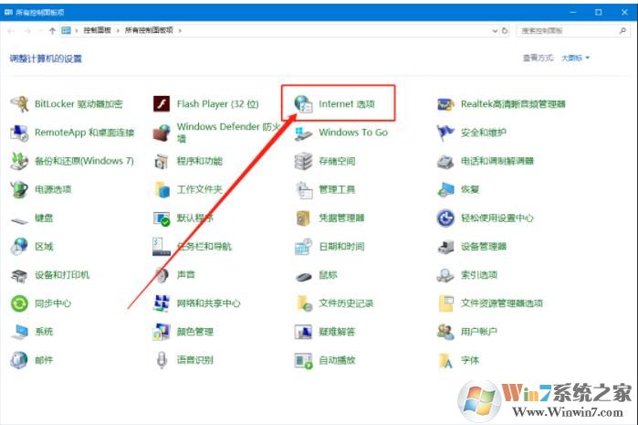 1、搜索控制面板在控制面板中,点击“internet选项”(也可以打开IE,然后在设置中打开internet选项)