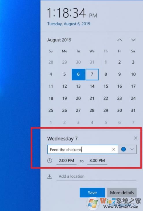 1、你现在可以直接从任务栏上的日历弹出按钮快速创建事件。只需单击任务栏右下角的日期和时间即可打开日历弹出按钮,并选择所需日期,开始在文本框中输入 - 你现在将看到内联选项以设置时间和位置。