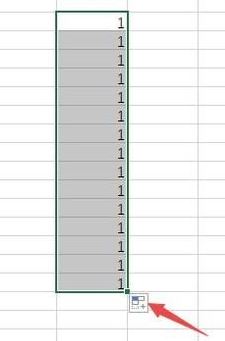 2、选中该单元格,之后将鼠标放在右下角,当出现十字符号后进行下拉;