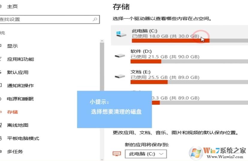 如果是清理临时文件,在储存右侧的C盘。
