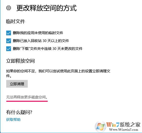 6、完成后再点击“立即清理”会提示“无法再释放更多磁盘空间”