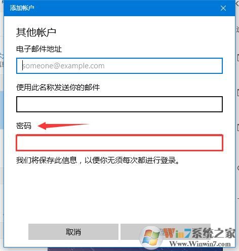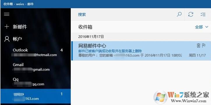 十、将授权码输入到Win10内置邮件应用提示框后,邮箱添加完成;
