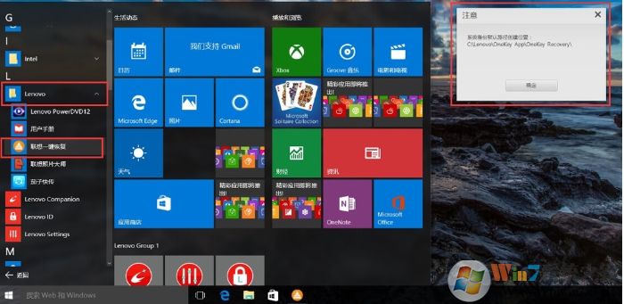 第二步:启动联想一键恢复APP,注意:为避免电量过低导致失败,请连接充电器。(后面系统也会有提示)