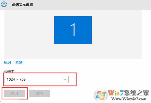 3、点击进入之后,在打开的窗口里面看到下图中所示的窗口,在下面的位就有一个分辨率选项,直接可以在这里设置想要的分辨率,然后点击应用就完成了。