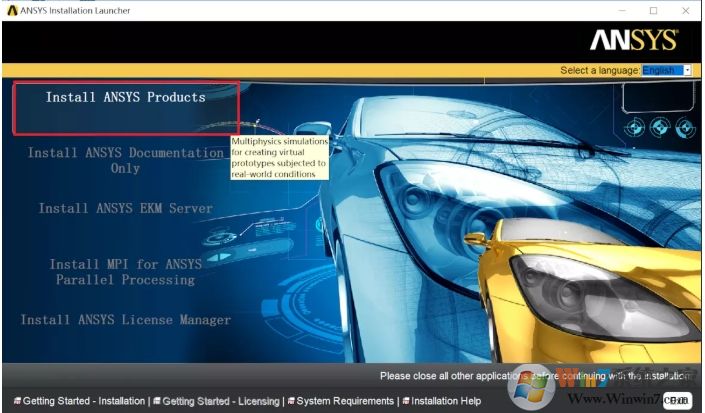 4.点击第一项安装ANSYS Products。