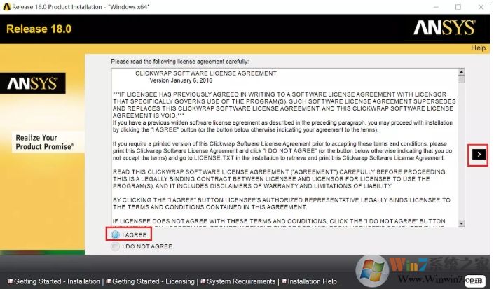 5.点击I AGREE(我同意),然后点击右箭头进入下一步。