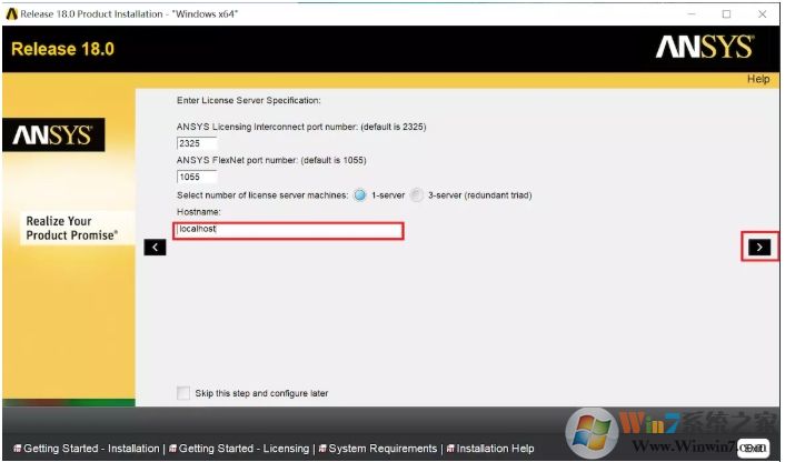 7.在Hostname下面输入localhost,然后点击右箭头进入下一步。