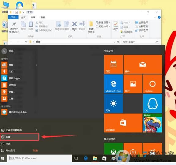 1、 点击开始菜单后选择 [ 设置 ]