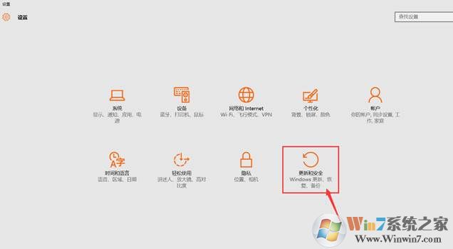 2、 在设置窗口下点击 [ 更新和安全 ]
