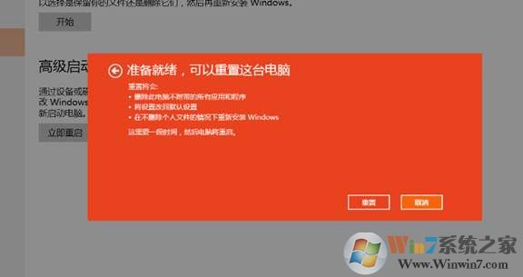 5、 选择好类型后开始重置(以 保留我的文件 为例)