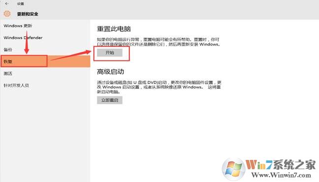 3、 选择 [ 恢复 ] 再选择 [ 开始 ]