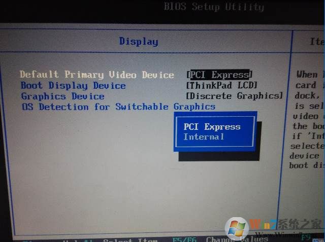 3、第一项——Default Primary Video Device,指定分配给显卡的优先级,第一个PCI Express其实就是独显,第二Internal个是内置的就是集显,我们选择第一个PCI Express。