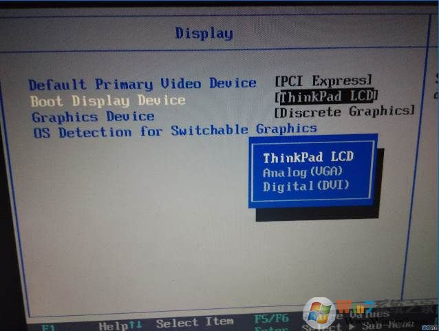 4、第二项——Boot Display Device,选择在引导时需要处于活动的状态的显示设备。该选择对于引导时间、密码提示和 BIOS 设置有效。因为没外接显示器,当然就选择ThinkPad LCD。
