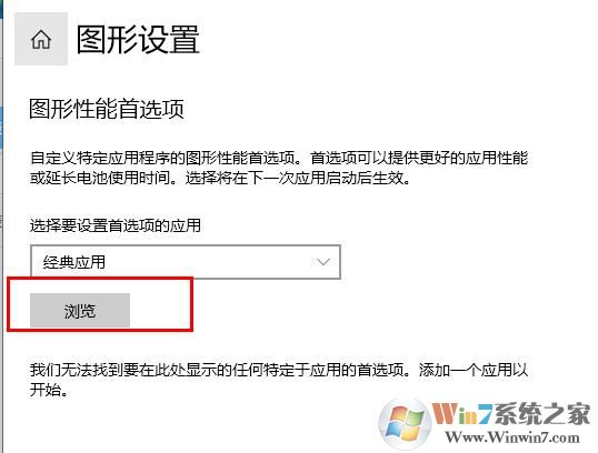 3、在图形设置中点击“浏览按钮,这样你可以找到你要加速的程序或是游戏;