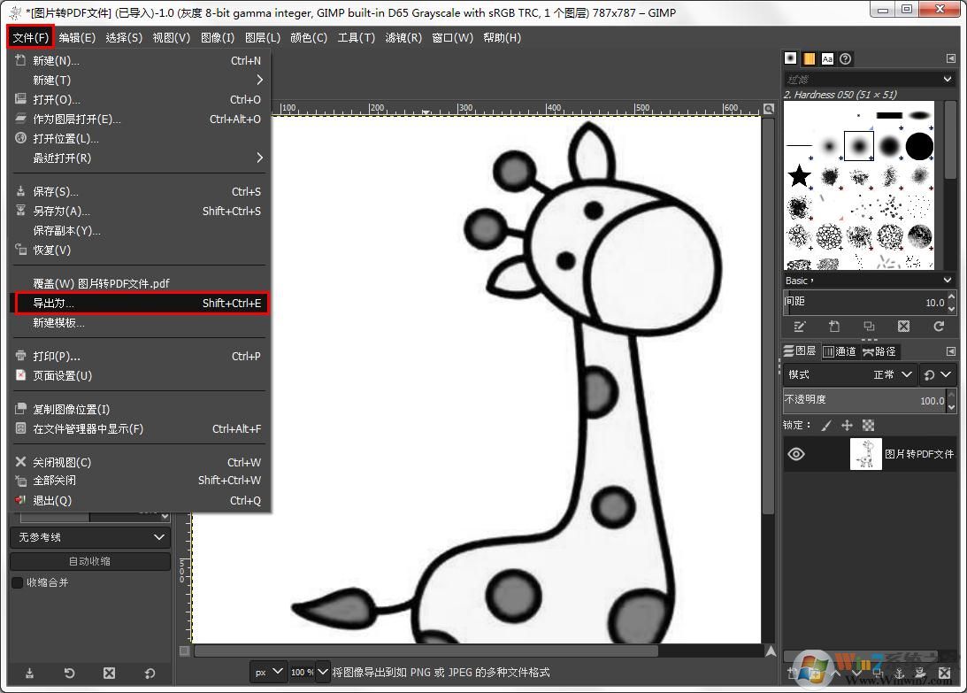 GIMP将彩色PDF图片导出成黑白PDF图片的方法步骤