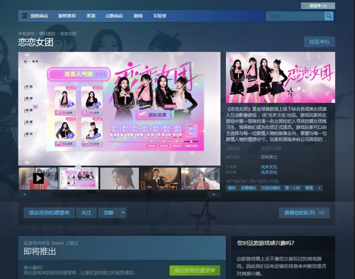 偶像养成,恋爱模拟,期待《恋恋女团》的发售,即刻出发,亲手打造属于自己的女团,掀起属于自己的青春风暴吧!