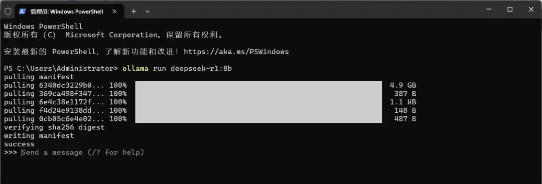 7、下载完成后稍微等待,看到success,即部署完成。