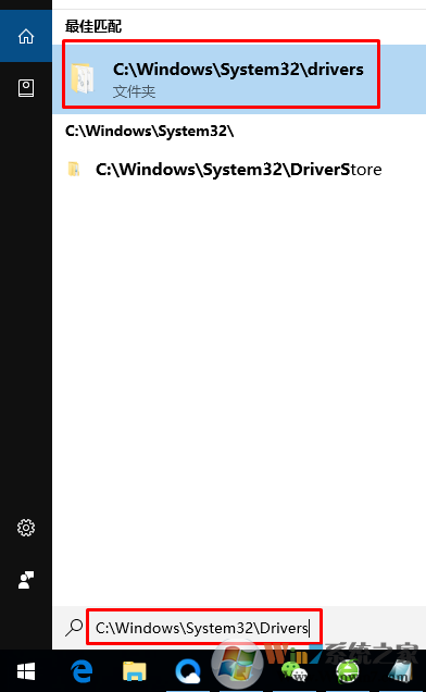 1. 打开小娜,输入以下路径:C:\Windows\System32\Drivers