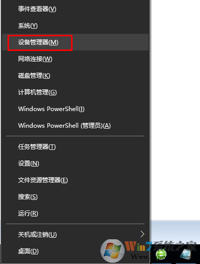 2. 点击"Win“键+X,选择“设备管理器”