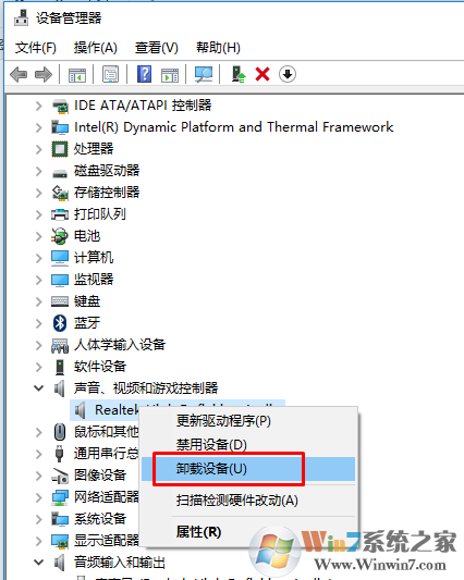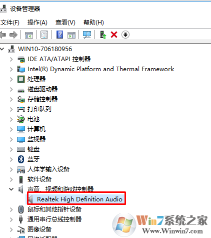 3.在“声音、视频”设备目录下 ,查看是否安装有Realtek的驱动(如下图)