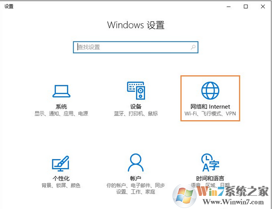 1、打开Win10设置,点击里面的“网络和Internet”。