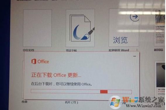 14、点击安装按钮后浏览器会提示“正在下载office更新”;