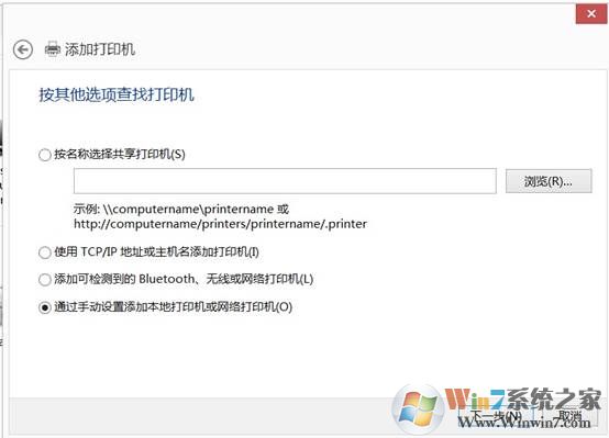 4、点击“通过手动设置添加本地打印机”;