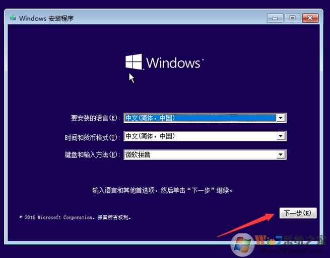 1、引导后,出现下面的安装界面第一屏,选择【下一步】;