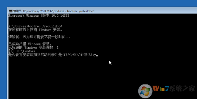 7、根据扫描结果,来确定是否需要恢复该系统的引导项。一般输入y之后,回车即可。