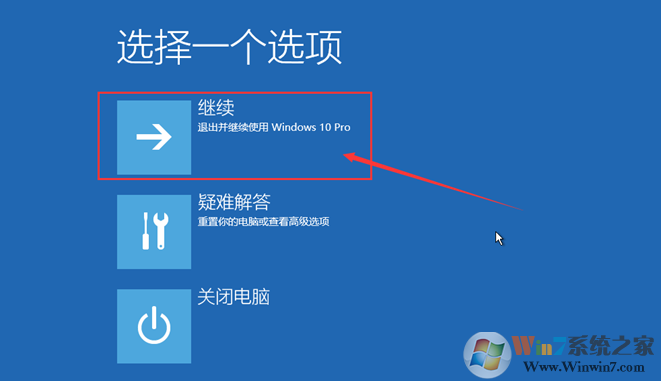 10、修复好之后,即可看到正常可用的【继续】的系统启动项;