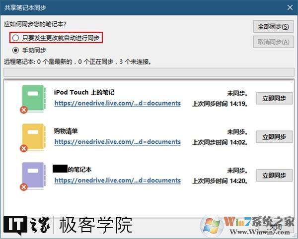 如果OneNote笔记中一个特定的部分不能自动同步,可能仅仅是因为你将OneNote的同步方式设置成了手动,你可以点击Robbin功能区中的文件-信息,再点击查看同步状态按钮,在应如何同步你的笔记中选择只要发生更改就自动进行同步。
