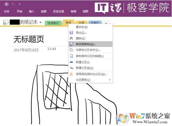 在OneNote笔记中,把鼠标光标放在有问题的那个笔记分区上,点击右键,选择移动或复制。