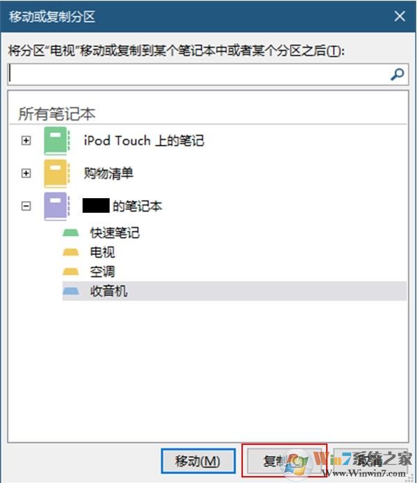 在接下来弹出的窗口中,选择你的目标位置,然后点击复制按钮,你将看到一份该笔记分区的拷贝。