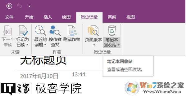 点击Robbin功能区中的历史纪录,再点击笔记本回收站。