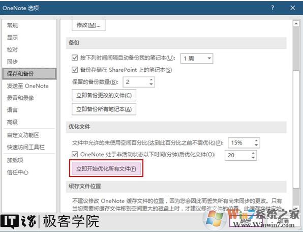 点击该窗口中的保存和备份,在优化文件下,点击立即开始优化所有文件按钮即可。