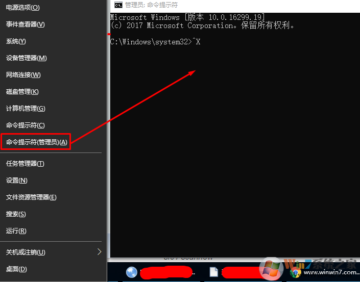 - 右键单击Windows键并选择命令提示符(管理员)。