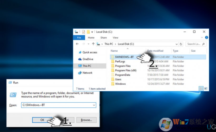 - 复制并粘贴C:\\ $ Windows。〜BT并单击确定。如果C:驱动器不是您操作系统的根驱动器,请将驱动器号更改为适当的驱动器号。