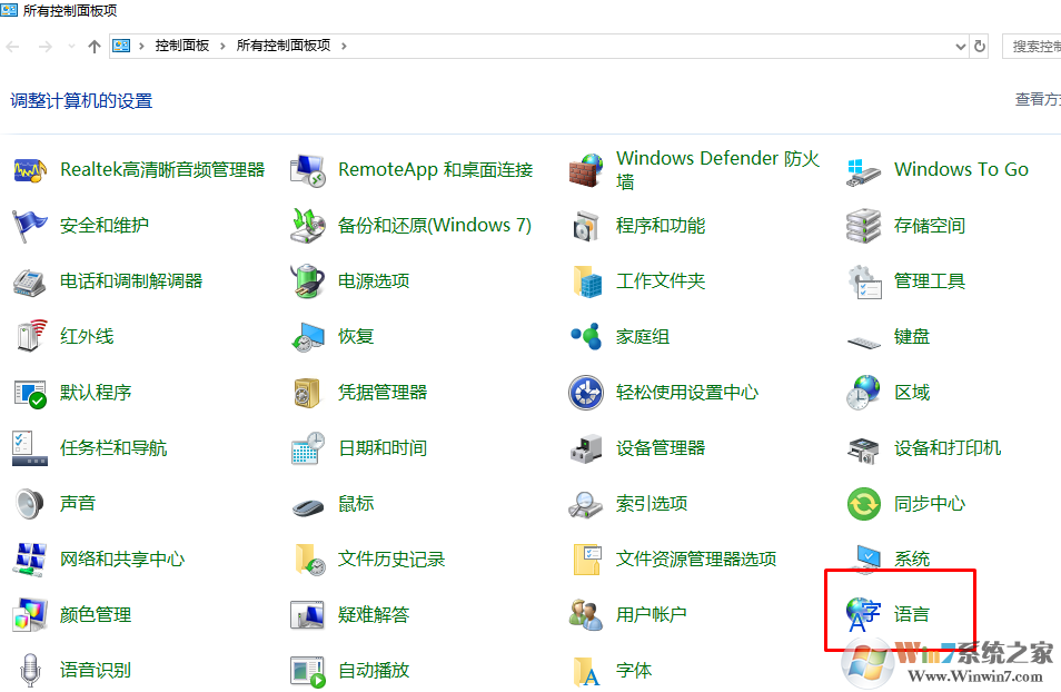 - 打开控制面板,然后选择语言。