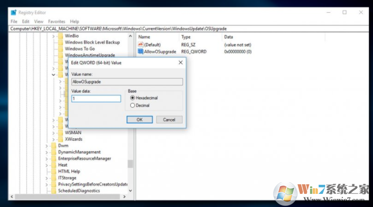 - 将其命名为AllowOSUpgrade并将其值设置为1。
