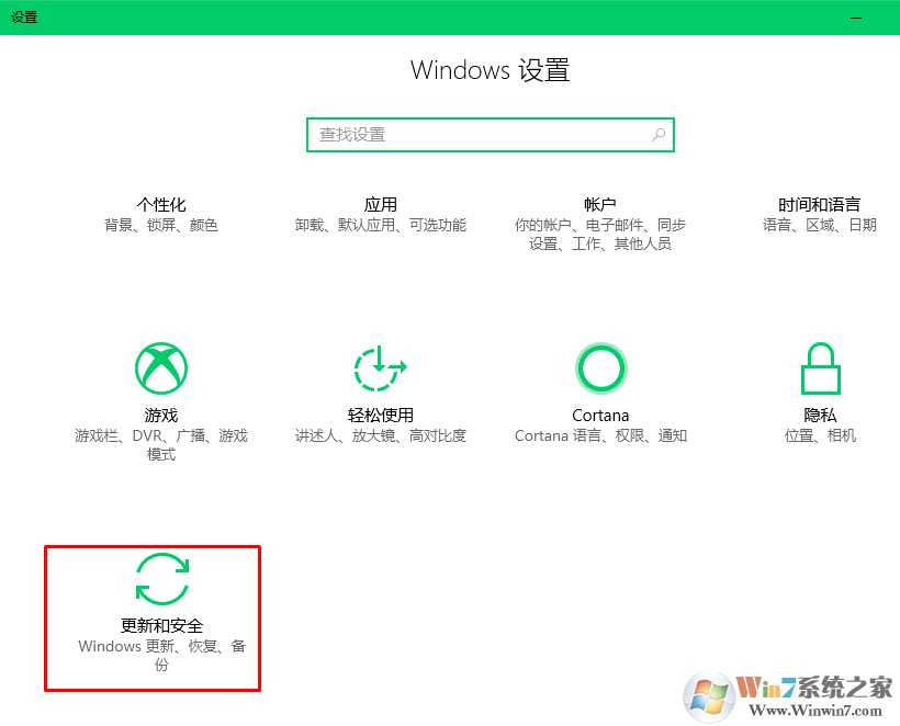 1. 从开始菜单访问设置,然后单击更新和安全图标。