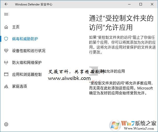 默认系统会允许大多数应用程序访问受控制文件夹,只限制个别可疑的或不常用的应用程序。如果你确定安全的应用程序也被阻止了,那么你可以在这里点击“添加允许的应用”把受限应用程序添加进来就可以了。