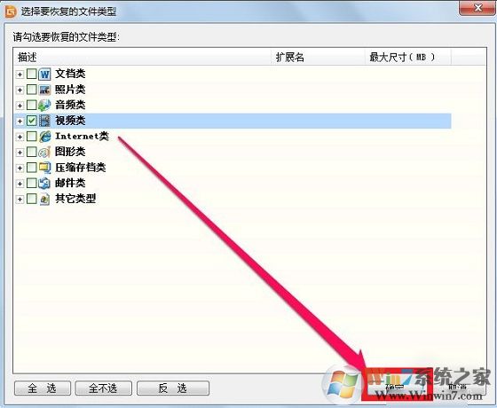 选择需要恢复的文件类型