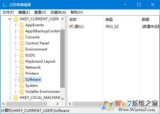 2、在注册表左侧依次展开:HKEY_CURRENT_USER/SOFTWARE;