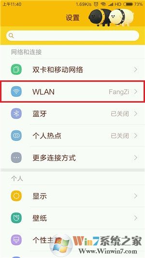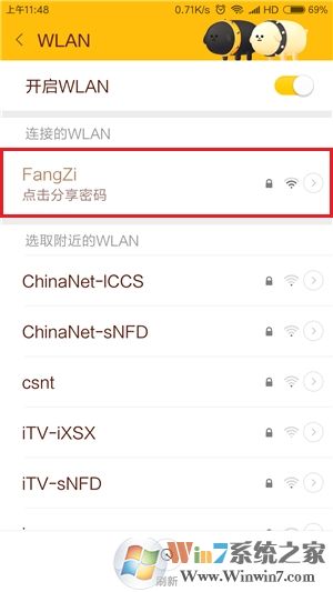3.若希望查看通过WiFi万能钥匙连接的热点密码,MIUI系统可以直接进入系统设置,并在“网络和连接”一栏中点击“WiFi”项,或在下拉任务栏中长按WiFi功能开关,进入系统热点连接界面。然后在“连接的WiFi”一栏中点击该WiFi热点名称,会弹出其无线密码的二维码图片。