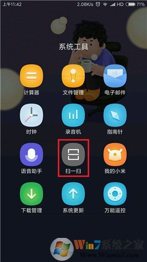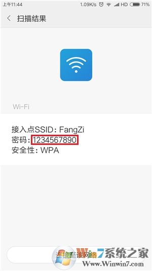 此时可以使用其他手机扫描该二维码,或将屏幕直接截图(按音量下键+电源键、任务键+电源键或下拉任务栏中的截屏按钮即可),然后在桌面上找到并打开“扫一扫”图标(默认在“系统工具”文件夹中),点击右上角的“相片”图标,然后再相册中打开“截屏”文件夹并选择该截图,最后在扫描结果页面中,点一下该热点密码后面的一串星号,即可将其显示出来。
