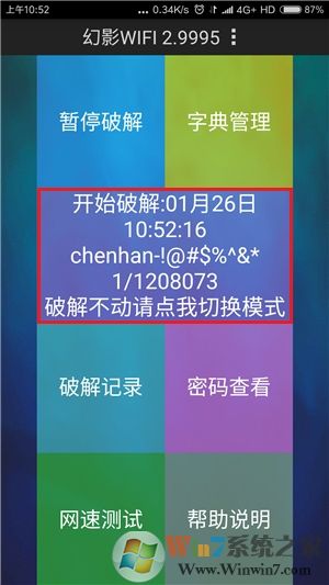 2.如果在破解过程中突然停住不动,请检查该热点信号是否存在或变弱,亦可记下波数(起始破解行数),并点击第二行蓝紫色区域,切换模式后退出程序,重新运行并继续破解即可。